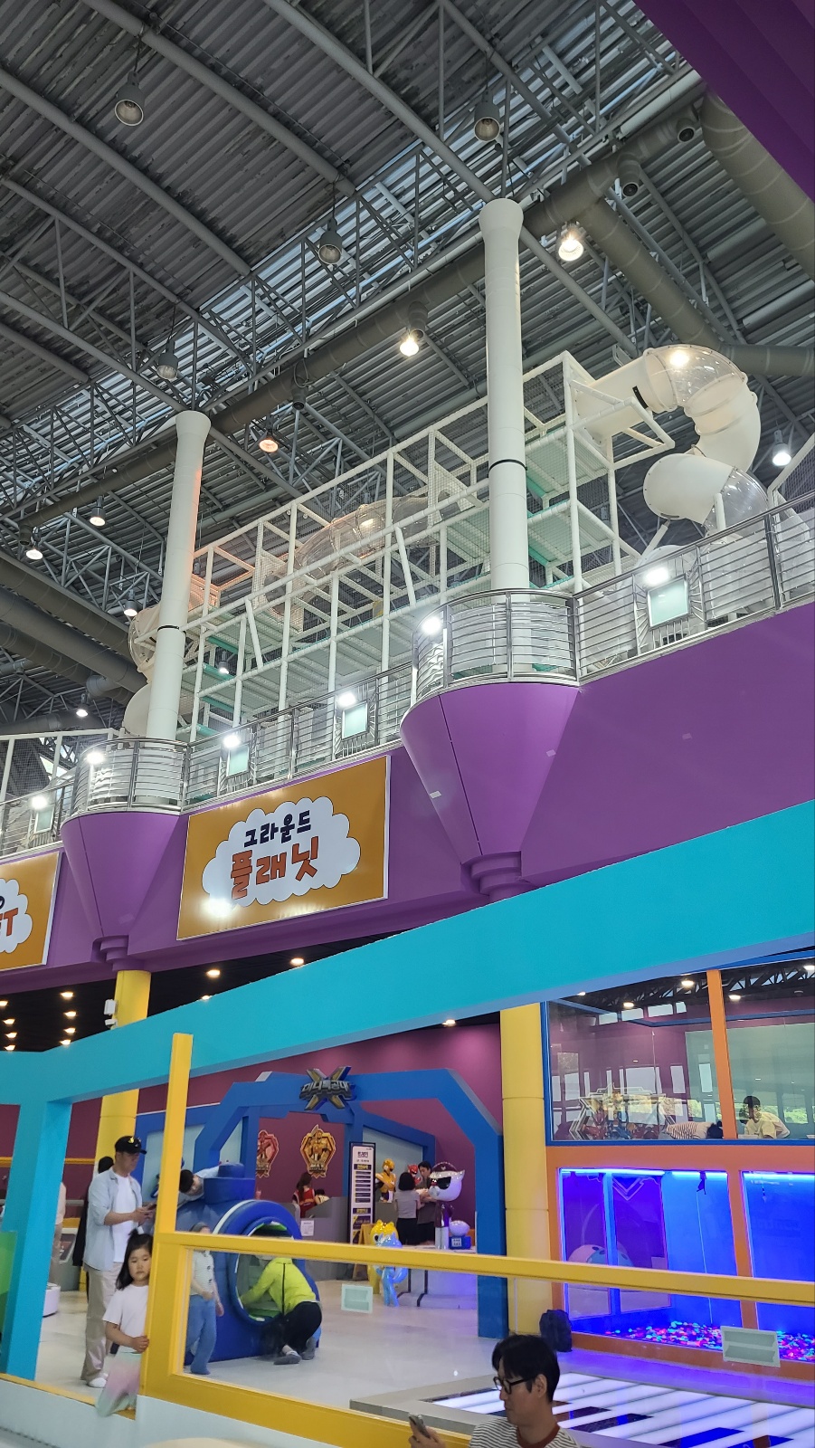 건물은 총 3층으로 구성되어있습니다. 1층은 대형 에어바운스가 있었고 2층은 포크레인, 놀이기구 종류들이 많았고 3층은 트램폴린과 미끄럼틀 종류가 있었습니다.